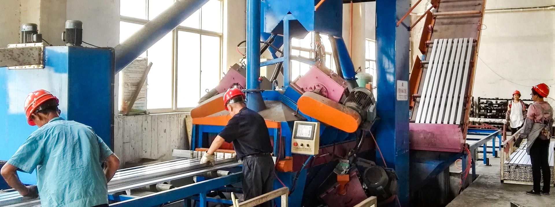 專業生產多種鋁合金型材及制品的企業,已有二十多年的經驗和歷史。現有鋁型材擠壓設備四套,分別為1800T、1000T、630T、600T擠壓生產配套設備有10m長不銹拋丸機。6m鋁型材表面拋光機,4.5m普拉迪鋁材加工中心,多臺高精度自動切割機,雙頭轉向切割機,備有12m長時效爐。